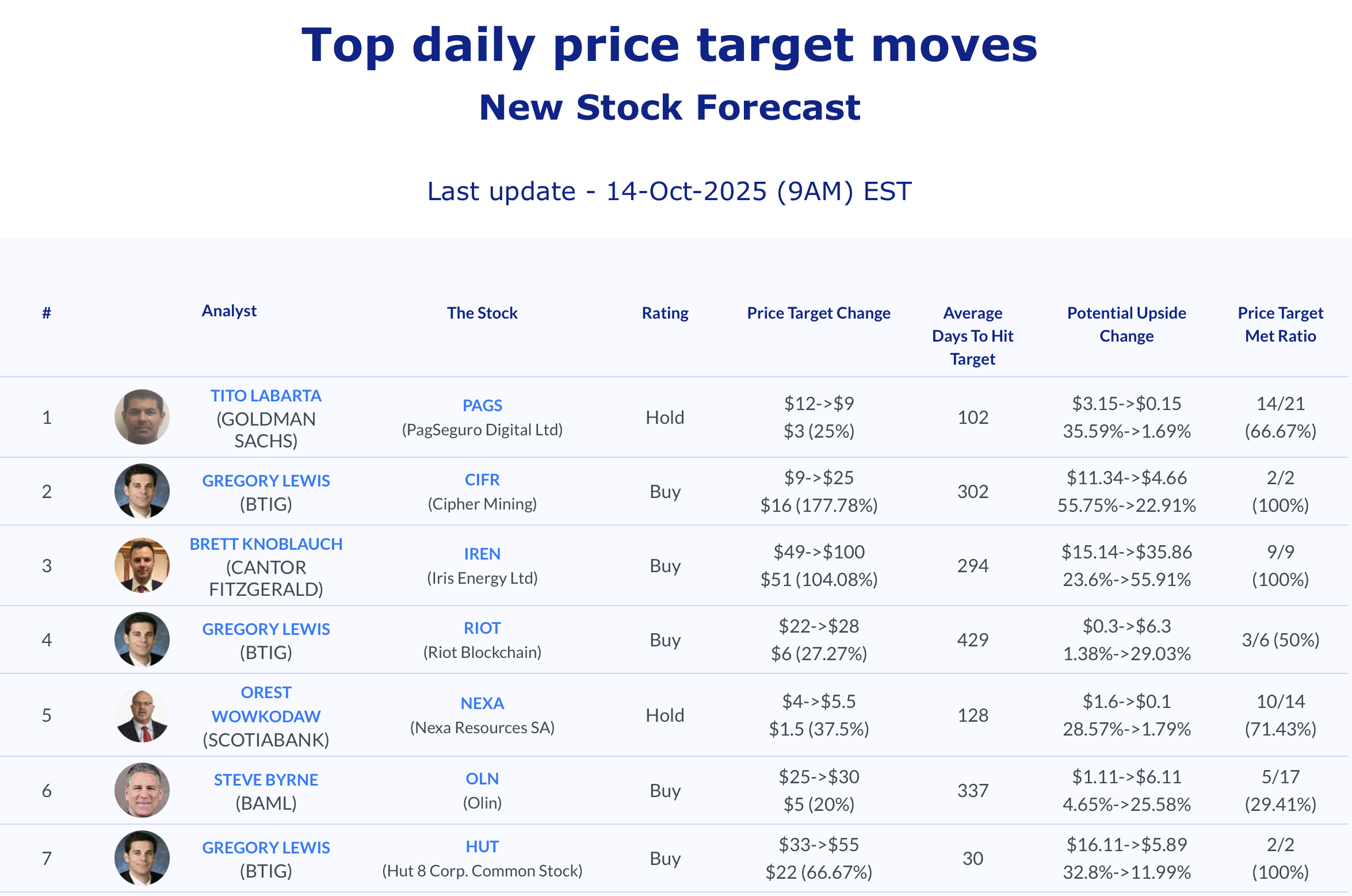 Selected stock price target news of the day - October 14th, 2025