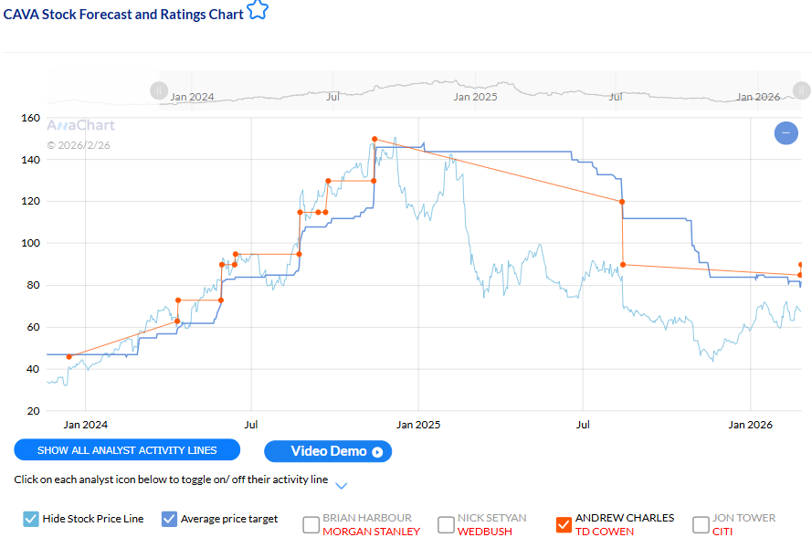 Andrew Charles of TD Cowen currently ranks among the top performers on CAVA, with an 88.89% price target hit ratio across 9 predictions and an average time to target of 28 days, reflecting consistent alignment between target setting and price realization.