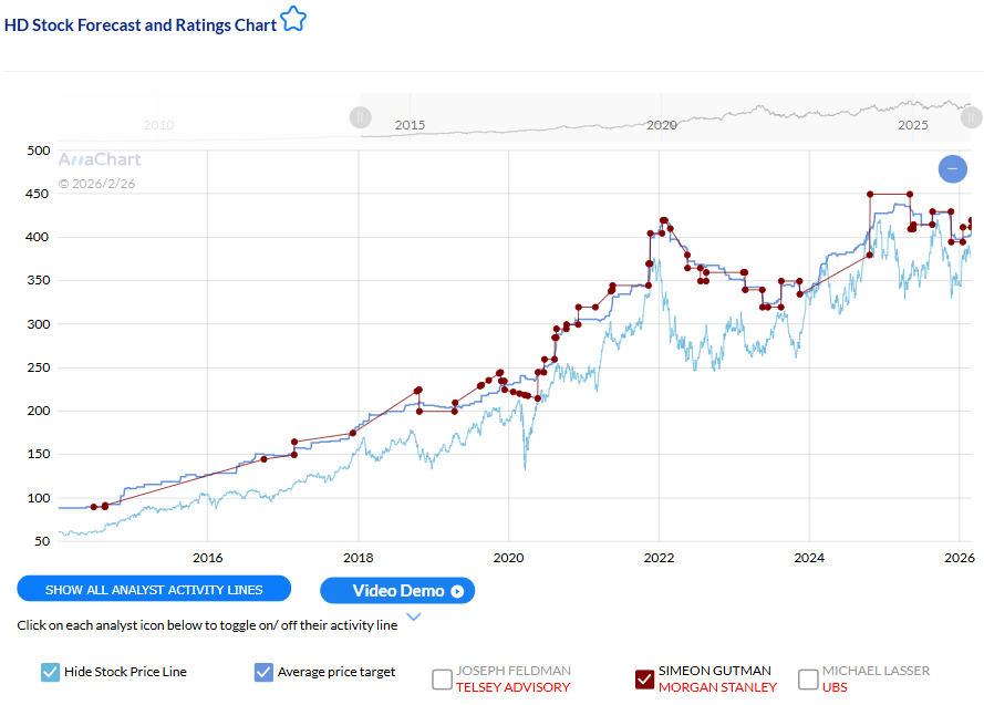 Simeon Gutman of Morgan Stanley currently ranks among the top performers on HD, with an 88.89% price target hit ratio across 36 predictions and an average time to target of 346 days, reflecting consistent alignment between target setting and price realization.
